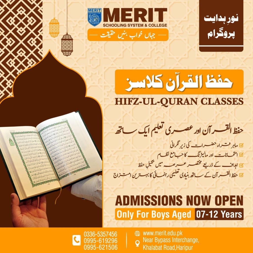 Admissions for Hifz-ul-Quran Classes under the “Noor-e-Hidayat Program (Hifz Department)” have officially started for the 2026–27 session. Key Features:A well-established